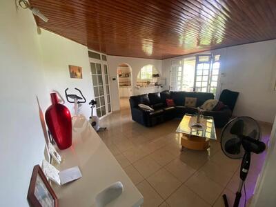 Voici une villa située à l'abri des regards, entre le Long Pré et Beleme, dans un quartier extrêmement calme, sur une parcelle de 1702m². Cette très belle maison est constituée d'un F4 de 3 chambres (dont une qui a sa salle de bain attenante), de 2 salons, d'une cuisine, d'une salle d'eau et d'une terrasse donnant sur une vue magnifique et imprenable sur la campagne du Lamentin. En rez de chaussée, nous retrouvons un appartement F3 régulièrement loué en saisonnier et très bien noté sur les sites, rapportant plus de 15 000€/an.