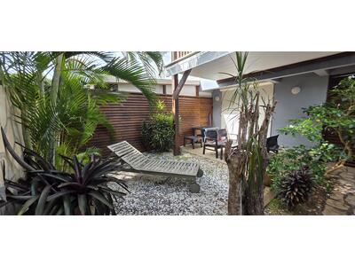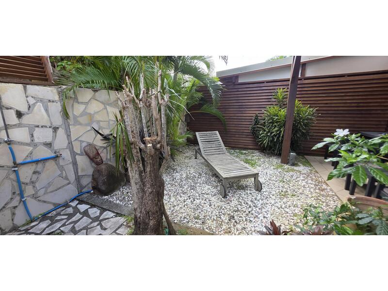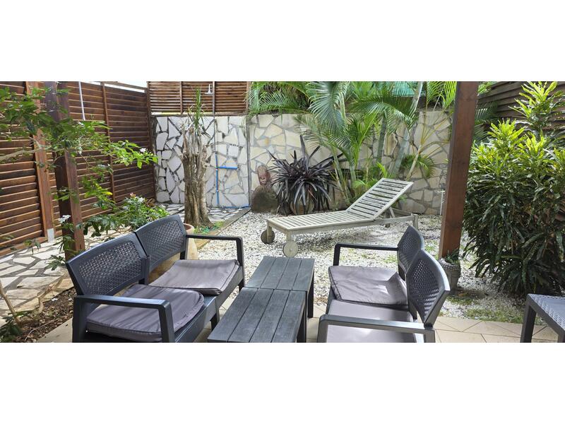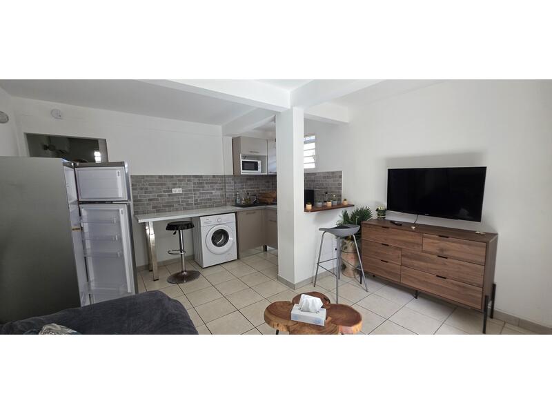 Ce bien est composé : d'une chambre climatisée avec salle d'eau et toilette, d'un salon avec une cuisine entièrement aménagée et équipée et une terrasse ouvrant sur un espace très ZEN.